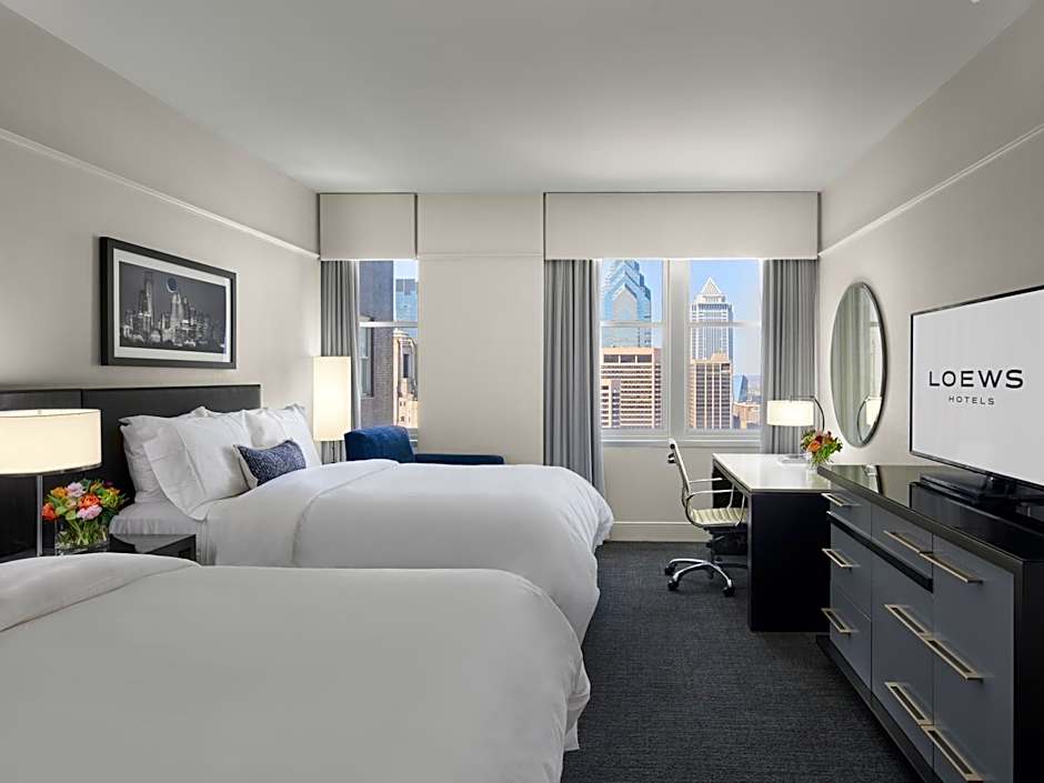 This corner room features modern decor and views of downtown Philadelphia or the Delaware River. There is a flat-screen TV and a mini-bar in the room. Free WiFi is provided in all rooms.