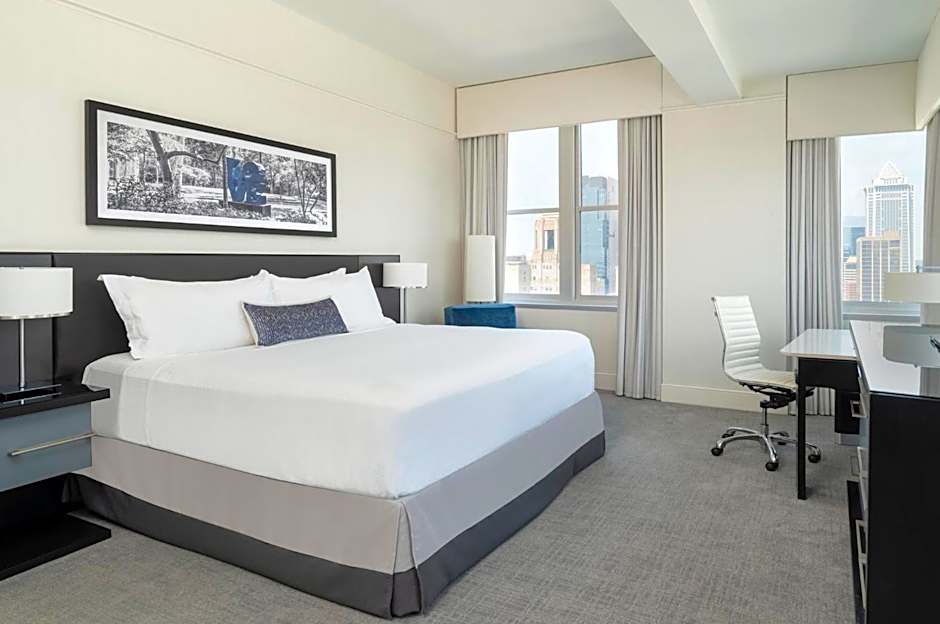 This corner room features modern decor and views of downtown Philadelphia or the Delaware River. There is a flat-screen TV and a mini-bar. Free WiFi is provided in all rooms.